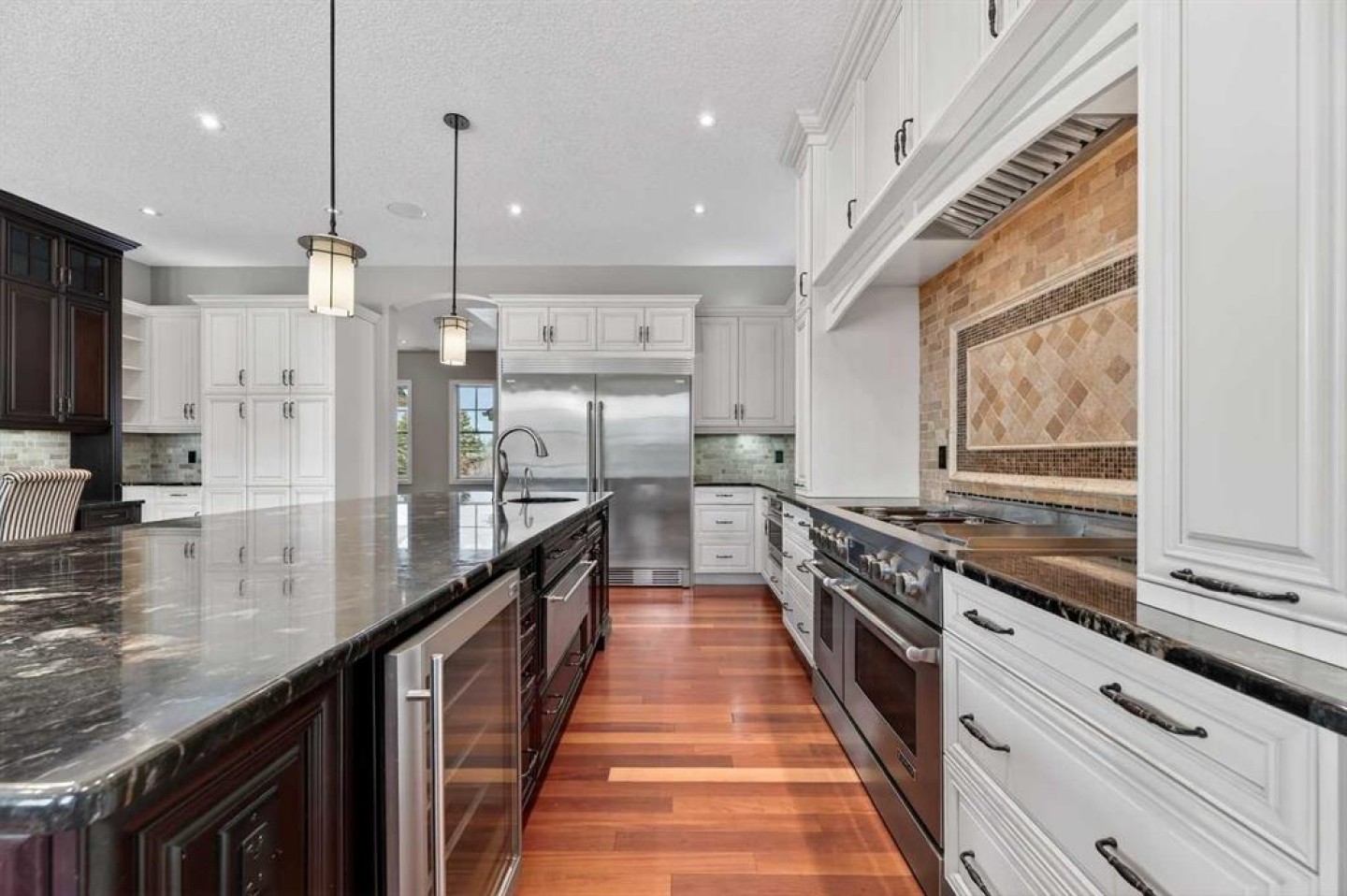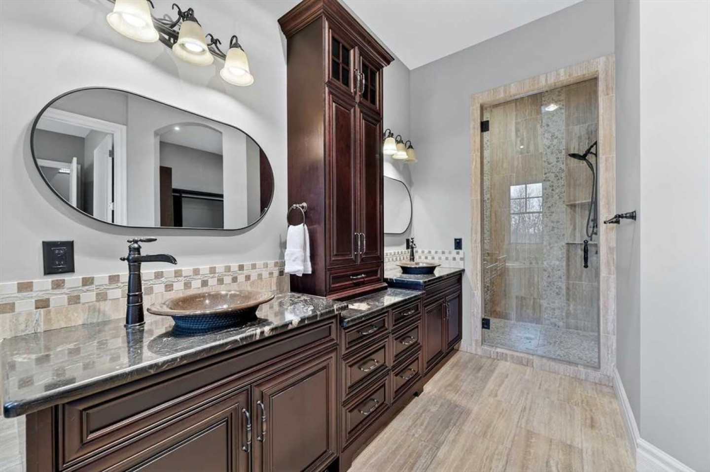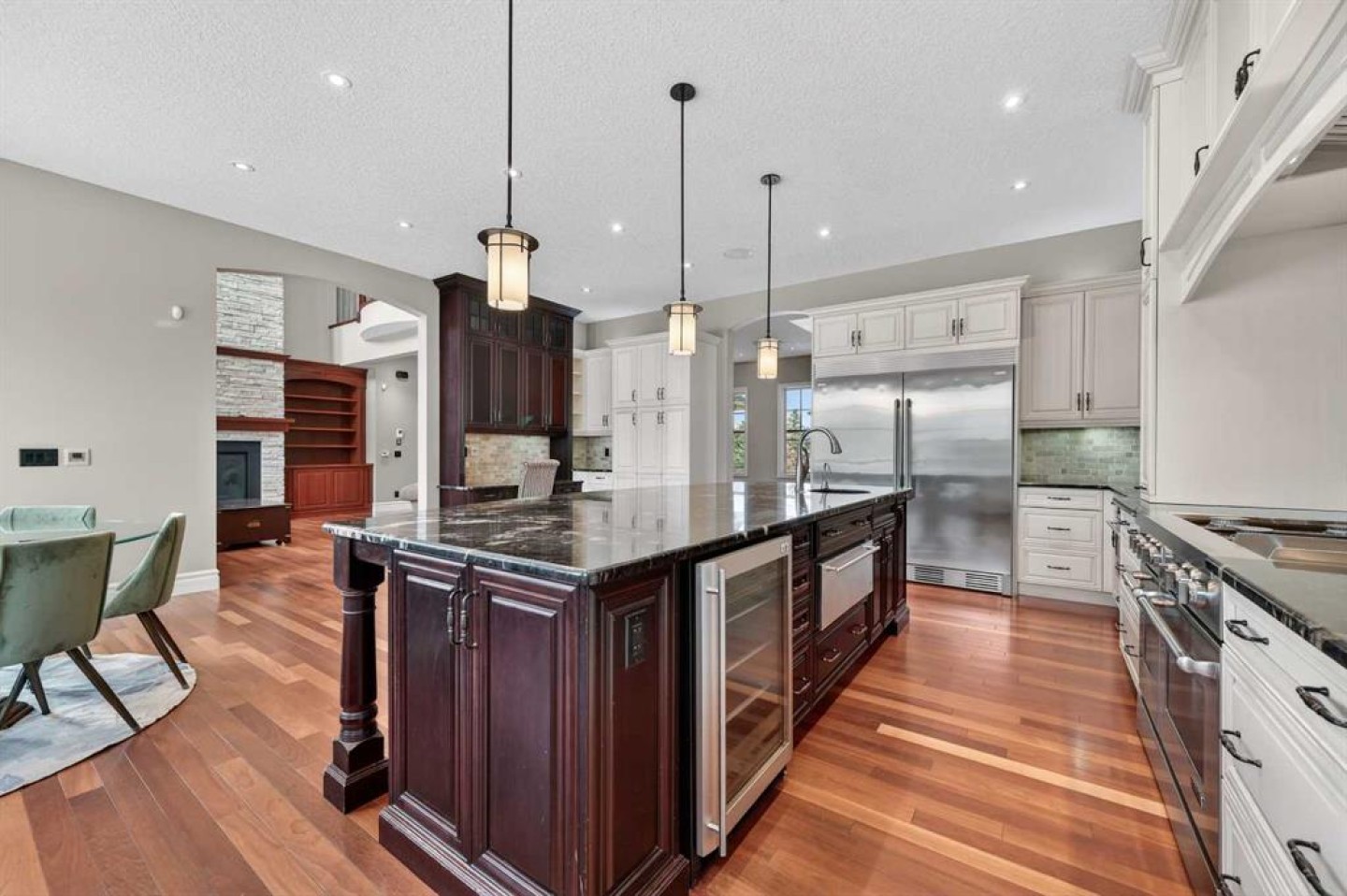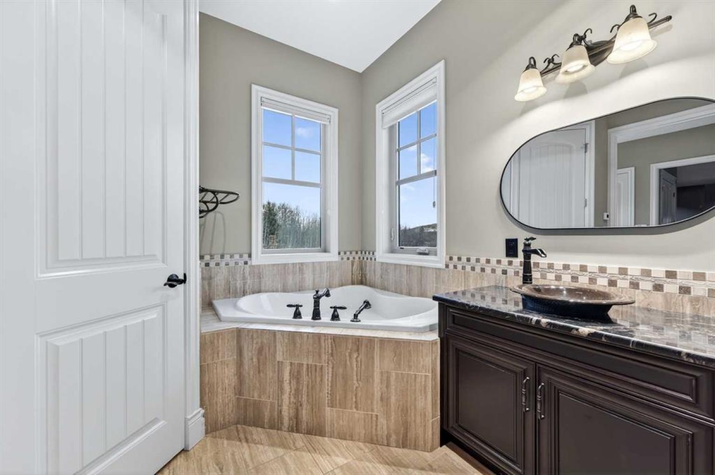 As you drive up your private lane, lined with mature trees and lush shrubbery, you arrive at a stunning, beautifully designed home. From the foyer, your eyes are immediately drawn into the family room, where a striking 20-foot stone fireplace anchors the space. The windows frame views of the backyard, highlighted by majestic trees and greenery. You will be delighted with the gourmet kitchen, featuring a large 10-foot island with seating area, gorgeous granite countertops, stylish backsplash, silgranit under-mount double sink, S/S appliances including a Jenn-Air 48” dual fuel, 6 burner gas cooktop with grill & dual ovens, custom wood hood-vent, Jenn-Air built-in oven, double door refrigerator/freezer, built-in dishwasher, trash compactor, wine fridge, & built-in warming drawer. A built-in desk with upper cabinetry adds valuable functionality and elevates the kitchen's overall design. An inviting eating area offers lovely views of the trees and the natural, forest-like surroundings. Additionally, a formal dining room creates the perfect setting for memorable gatherings. The eating area and the primary suite both enjoy access to the expansive deck, complete with a BBQ hookup. You can choose between two primary suites, one located on the main floor and the other on the upper level. The main floor primary ensuite features a jetted tub, double vanity, and a steam shower. Two additional 2-piece bathrooms complete this level. The upper level offers a striking open-to-below catwalk and multiple desk nooks, perfect for study or remote work. The upper primary bedroom has a dedicated desk nook, a well-appointed 3-piece ensuite and a walk-in closet for added convenience. There are two additional bedrooms with a thoughtfully designed Jack-and-Jill bathroom. A large bonus room, ideal for movie nights, anchors the upper floor, along with a laundry room and a handy 2-piece bath. An impressive oversized heated 3-car garage offers generous space for vehicles, storage and hobbies, with convenient access to the basement and the main level. What truly sets this private estate apart is its 21 acres of stunning forested grounds, with trees, shrubs, and open spaces. It’s your chance to reconnect with nature since you’re sure to catch a glimpse of the local wildlife. You’ll also appreciate the convenience of the Priddis General Store for last-minute essentials, along with a service station, a local restaurant and bar, and a cozy coffee shop for a quick pick-me-up. Priddis Greens Golf and Country Club is in close proximity, offering personal and corporate memberships. With Bragg Creek, the Millarville Farmers’ Market, scenic parks, hiking, mountain biking, horseback riding trails and numerous campgrounds just a short distance away, the opportunities for recreation and relaxation are endless. There’s truly no better place to call home than this incredible Priddis property. This property is undergoing subdivision. The remaining 138 acres is also available for $2,220,000.