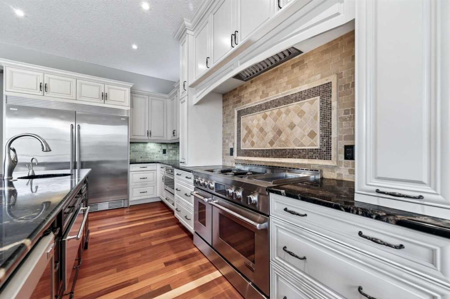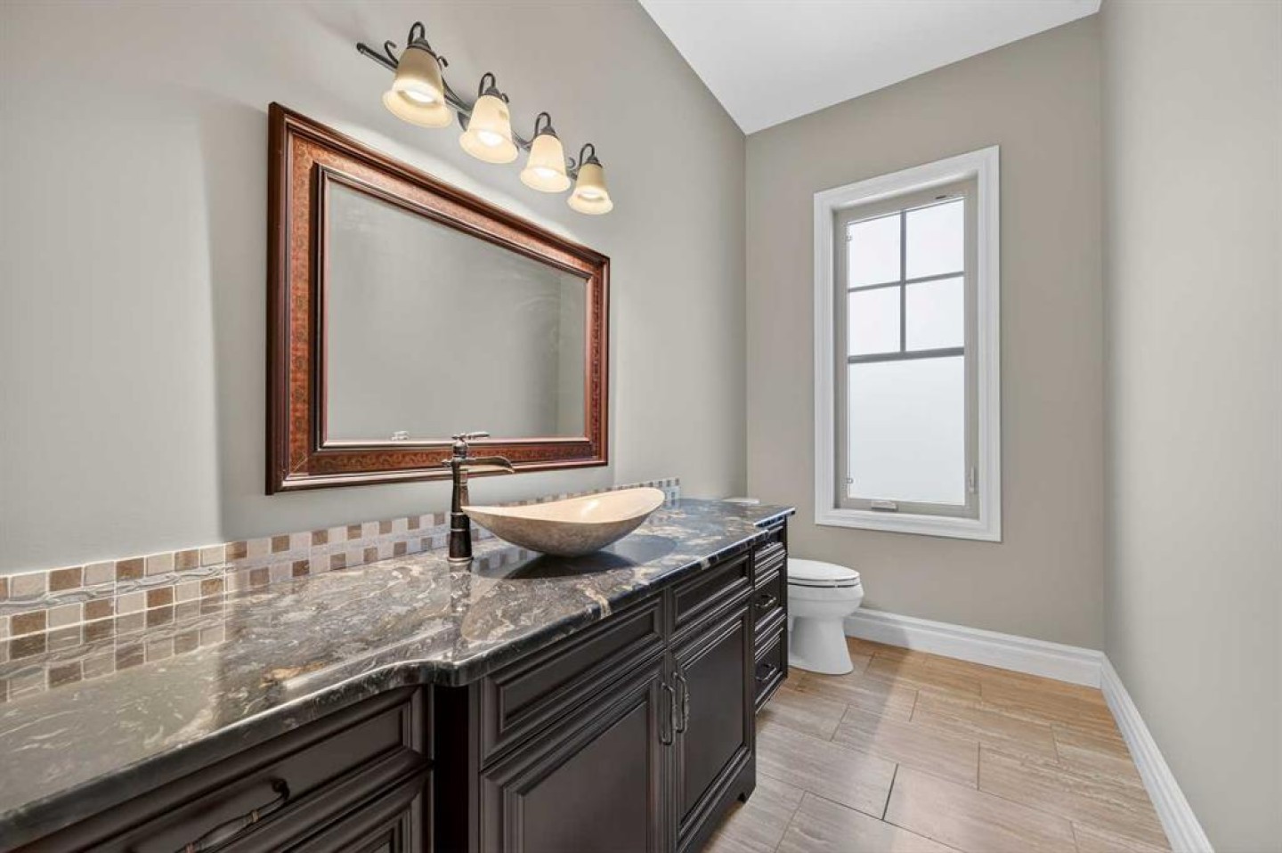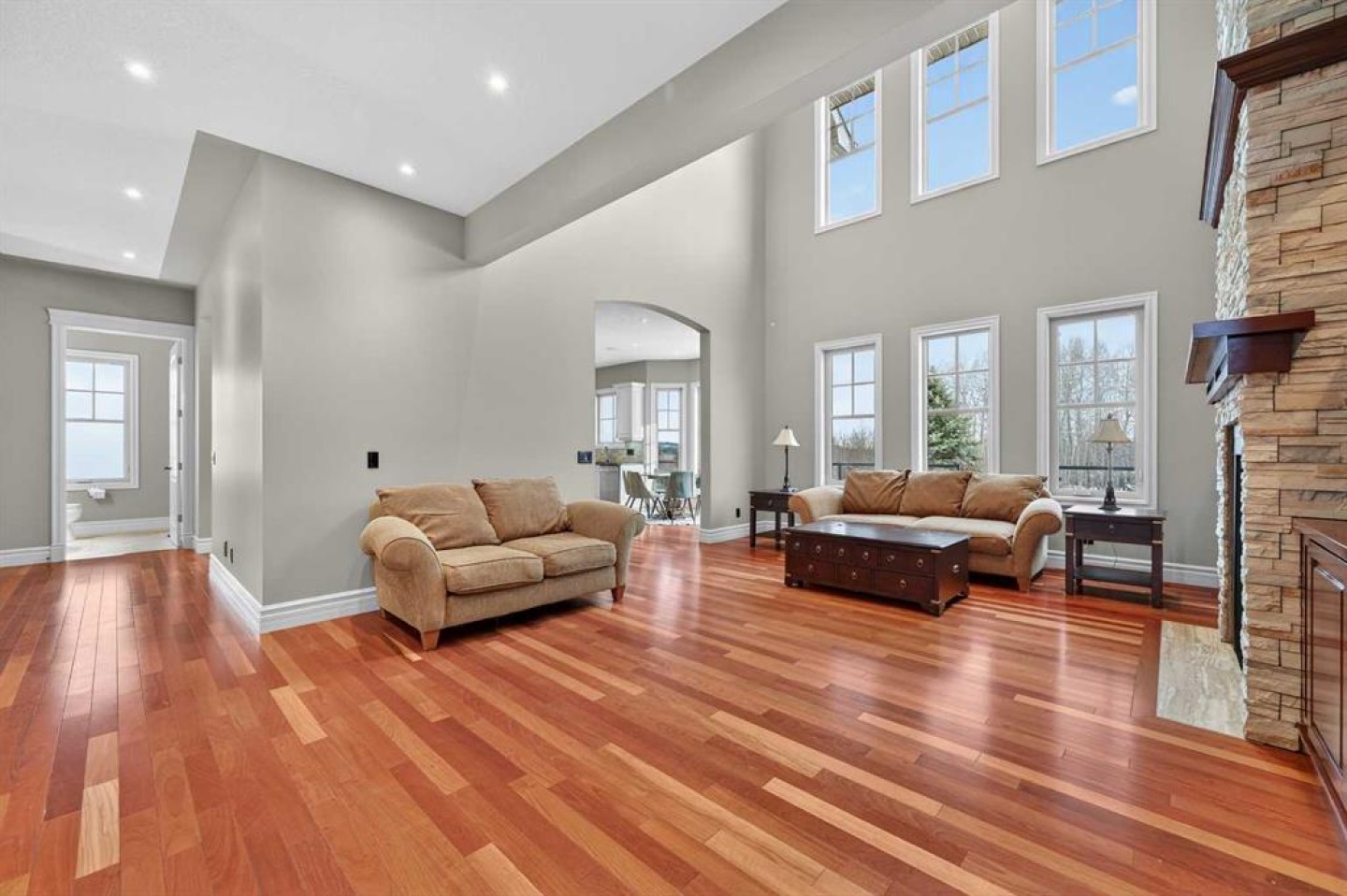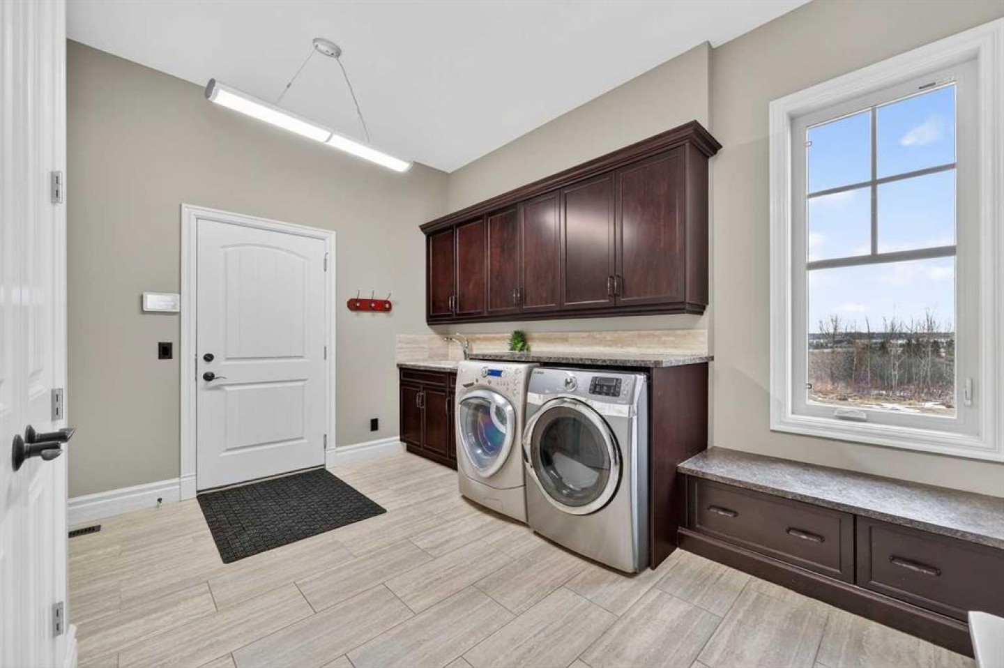 As you drive up your private lane, lined with mature trees and lush shrubbery, you arrive at a stunning, beautifully designed home. From the foyer, your eyes are immediately drawn into the family room, where a striking 20-foot stone fireplace anchors the space. The windows frame views of the backyard, highlighted by majestic trees and greenery. You will be delighted with the gourmet kitchen, featuring a large 10-foot island with seating area, gorgeous granite countertops, stylish backsplash, silgranit under-mount double sink, S/S appliances including a Jenn-Air 48” dual fuel, 6 burner gas cooktop with grill & dual ovens, custom wood hood-vent, Jenn-Air built-in oven, double door refrigerator/freezer, built-in dishwasher, trash compactor, wine fridge, & built-in warming drawer. A built-in desk with upper cabinetry adds valuable functionality and elevates the kitchen's overall design. An inviting eating area offers lovely views of the trees and the natural, forest-like surroundings. Additionally, a formal dining room creates the perfect setting for memorable gatherings. The eating area and the primary suite both enjoy access to the expansive deck, complete with a BBQ hookup. You can choose between two primary suites, one located on the main floor and the other on the upper level. The main floor primary ensuite features a jetted tub, double vanity, and a steam shower. Two additional 2-piece bathrooms complete this level. The upper level offers a striking open-to-below catwalk and multiple desk nooks, perfect for study or remote work. The upper primary bedroom has a dedicated desk nook, a well-appointed 3-piece ensuite and a walk-in closet for added convenience. There are two additional bedrooms with a thoughtfully designed Jack-and-Jill bathroom. A large bonus room, ideal for movie nights, anchors the upper floor, along with a laundry room and a handy 2-piece bath. An impressive oversized heated 3-car garage offers generous space for vehicles, storage and hobbies, with convenient access to the basement and the main level. What truly sets this private estate apart is its 21 acres of stunning forested grounds, with trees, shrubs, and open spaces. It’s your chance to reconnect with nature since you’re sure to catch a glimpse of the local wildlife. You’ll also appreciate the convenience of the Priddis General Store for last-minute essentials, along with a service station, a local restaurant and bar, and a cozy coffee shop for a quick pick-me-up. Priddis Greens Golf and Country Club is in close proximity, offering personal and corporate memberships. With Bragg Creek, the Millarville Farmers’ Market, scenic parks, hiking, mountain biking, horseback riding trails and numerous campgrounds just a short distance away, the opportunities for recreation and relaxation are endless. There’s truly no better place to call home than this incredible Priddis property. This property is undergoing subdivision. The remaining 138 acres is also available for $2,220,000.