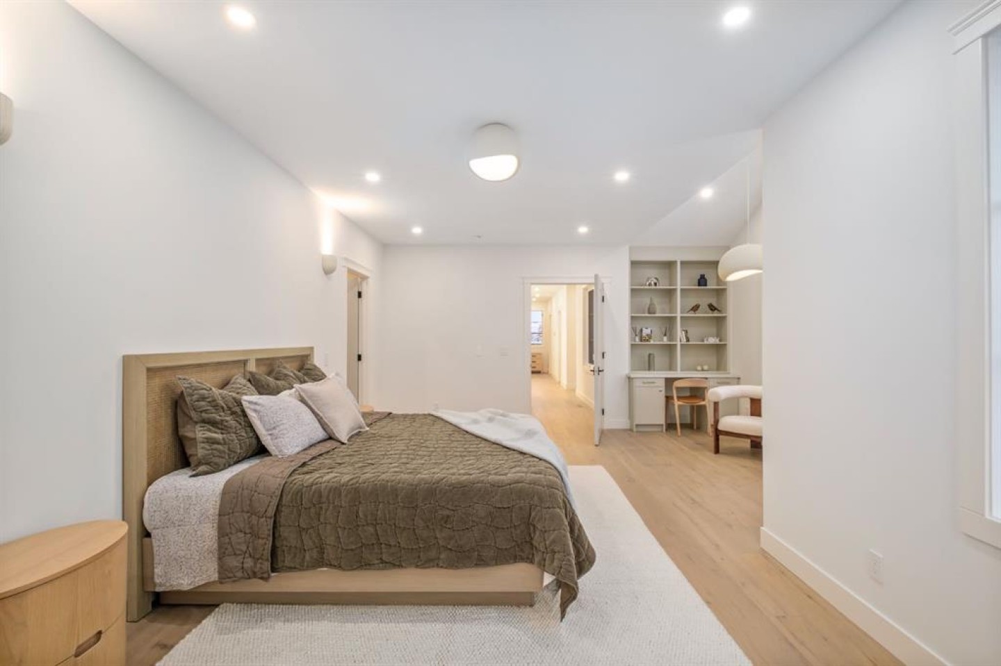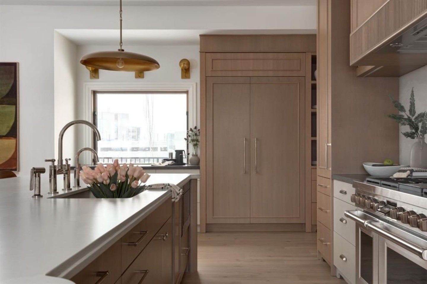 Welcome to this exceptional custom residence on prestigious Toronto Crescent in highly sought-after St. Andrews Heights. Perfectly positioned on an expansive 9,000 sq. ft. lot, this meticulously designed home offers over 6,000 sq. ft. of developed luxury living, crafted by Maxime Chin Designs with uncompromising detail and style. This remarkable property features an 80’ wide backyard, walkout basement, 63’ full-width balcony, attached triple garage, 5 bedrooms, 5.5 bathrooms, 4 gas fireplaces, bonus room with balcony, butler’s pantry, dedicated office, home gym, Sub-Zero/Wolf appliance package, designer lighting, and so much more. Enter through the grand foyer and be welcomed by soaring 10’ ceilings and expansive sight-lines. To the side, the inviting living room showcases beautiful built-ins and an oversized gas fireplace. LUX accordion doors open seamlessly to the massive covered balcony—complete with an outdoor fireplace—creating an exceptional indoor/outdoor living experience. The stunning kitchen features custom oak cabinetry, exquisite quartz surfaces, a 48” Wolf gas range, Sub-Zero refrigerator, and a spacious butler’s pantry with sink, dishwasher, and convenient shelving. The formal dining room is wrapped in bespoke wallpaper that extends to the limewash ceiling and includes a stunning bar area with direct access to the balcony. A private office, stylish powder room, and a well-appointed mudroom with built-in lockers complete the main floor. The luxurious primary suite features a beautiful arched window offering a glimpse of the downtown Calgary skyline. The spa-inspired 5-piece ensuite includes a freestanding reeded tub, large walk-in steam shower, marble backsplash & dual vanity. Also a spacious walk-in closet outfitted with custom built cabinetry rounds out the suite. The builder has left the primary room as a blank canvas and will work with the new homeowners to create a custom oasis. Three additional bedrooms (two with ensuites), a full main bath, and a laundry room with two sets of washers and dryers offer convenience and comfort. A spectacular bonus room crowns the upper level with 12’ ceilings, a gas fireplace, private balcony, built-in bar, and a dedicated homework station. The basement level is bright and open thanks to the large windows due to the walkout design, the lower level features a spacious rec room with gas fireplace, full bar, gym, 5th bedroom, and a serene 4-piece bath. Outside you will find the extraordinary 80’ wide backyard providing exceptional usable space, complete with a ground-level, covered patio and endless opportunities for outdoor enjoyment. This home must be seen in person to truly appreciate the craftsmanship, thoughtful design, and rare combination of luxury and location.