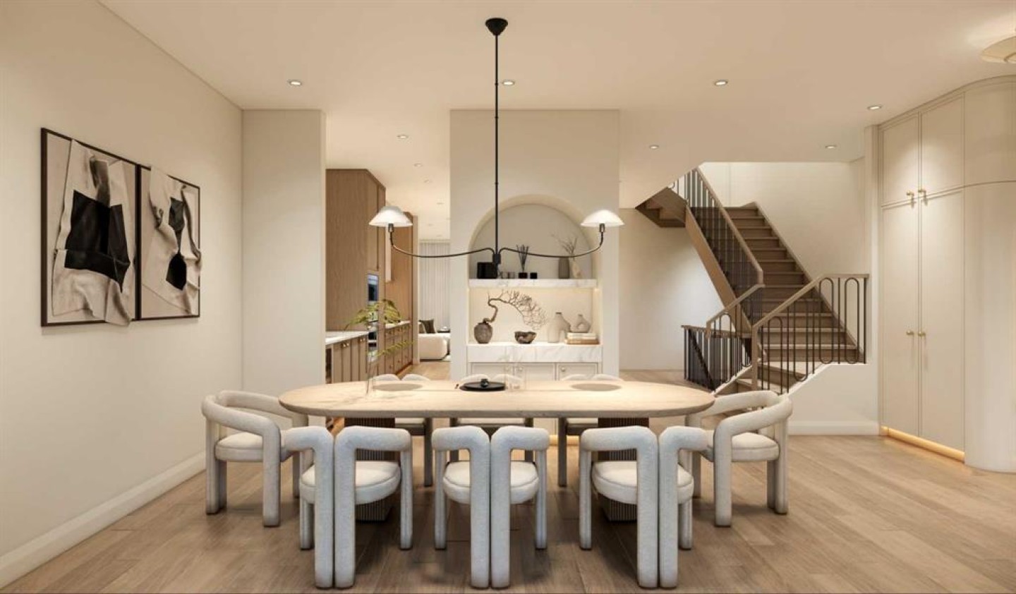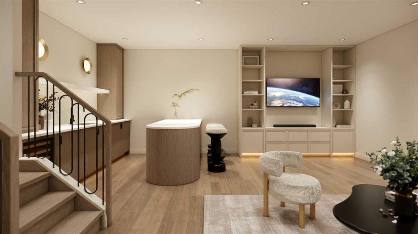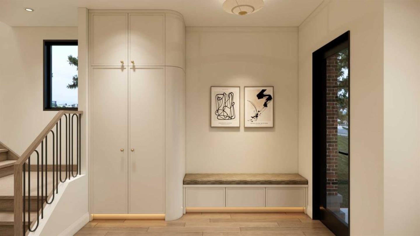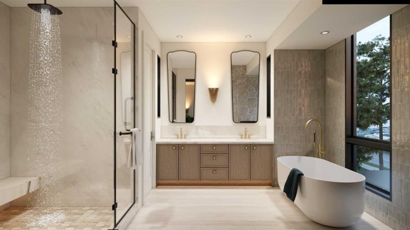 An artisanal masterpiece awaits, steps to Confederation Park, where every detail has been meticulously curated by a builder renowned for impeccable taste. Approaching the home, a large covered front patio welcomes you, setting the tone for a residence that is truly a cut above. Inside, the open~concept main floor is designed for both grand entertaining and everyday living. The front formal dining area features an adjacent wine display and a hidden butler’s pantry, both encased in elegant white oak feature walls, while a tucked away hidden home office seamlessly blends sophistication with functionality. The expansive kitchen with panel ready JennAir appliances blends effortlessly into the living room at the back. Anchored by a striking stone cast gas fireplace hearth and complemented by a discreet powder room and spacious mudroom, this main floor leaves nothing to be desired. Ascending to the upper floor, the master suite impresses with an 18~foot vaulted ceiling and 12~foot double sided stone gas fireplace, offset by a freestanding tub. The ensuite exudes a moody, indulgent vibe with accent lighting, a large steam shower with body jets, and a raindrop shower head. The walk~in closet is the size of a secondary bedroom, filled with natural light from a skylight, lit accent cabinetry and a glass countertop valet stand. Two additional bedrooms, each with tray ceilings, starlights, and backlit crown moulding, also feature their own walk~in closets and ensuites. With a conveniently located (and magazine worthy) laundry room completing this space. The lower level continues the theme of refined living, offering a large living area with projector and screen, a wet bar with island, and an additional versatile home office space with glass wall detailing. A private large fourth bedroom for a family member or guests, includes a massive walk~in closet ideal for additional home storage. Even the mechanical room is a statement piece, finished with diamond checker plate walls and epoxy floors. Throughout the home, thoughtful features abound. The oversized garage is also heated and fully finished with epoxy flooring, and the upper bathrooms are connected to an instant hot water system, All closets are finished in a thermally fused laminate material, complemented again by fully installed air conditioning system, and speaker system throughout. This is a home that marries unparalleled craftsmanship, intelligent design, and luxurious finishes at every turn. From the moment you arrive to the final detail in the basement, this home is a true reflection of bespoke elegance. Est completion July 2026.